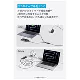 2本のUSB-C ケーブルを1つにまとめました。お使いのUSB-C ポート搭載機器へ2台同時に充電することが可能。旅行や出張など、持ち運びにも最適です。