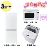 ハイアール 新生活3点セット ファン式 140L冷蔵庫/5kg洗濯機/ヘルツフリー18L電子レンジ ラック 26SHIN-C3K-ESET