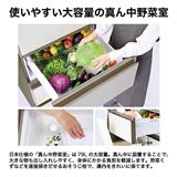 日本仕様の「真ん中野菜室」は79Lの大容量。真ん中に設置することで、大きな物も出し入れしやすく、身体にかかる負担を軽減します。野菜くずなどを直接掃きだせるおそうじ栓で、庫内をきれいに保てます。