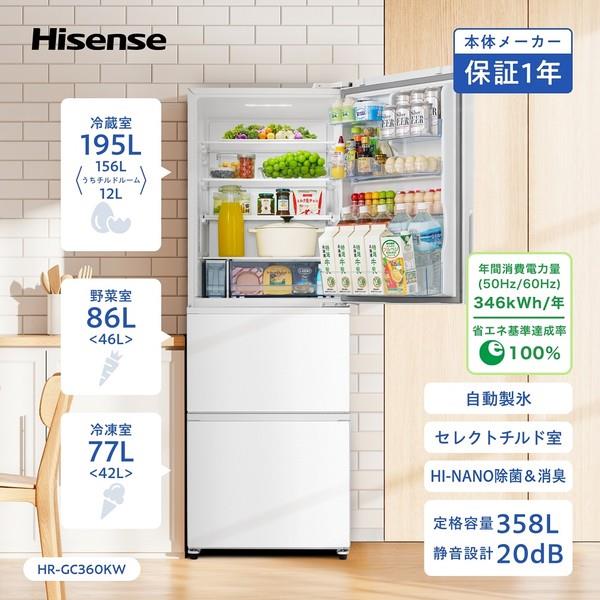 ハイセンス ファン式冷凍冷蔵庫 [3ドア/右開き/358L/ホワイト] ★大型配送対象商品 HR-GC360KW