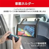 車のヘッドレストにアーム部分を引っかけることで、車載ホルダーとして利用可能。後部座席でゲームを楽しむことができます。