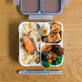 ■ワンプレート設計。中仕切りは固定されておりごはんやおかずを詰めるだけなのでお弁当作りが簡単になります。