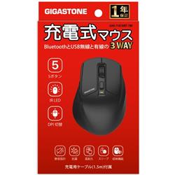 GIGASTONE 充電式マウス 3WAY【静音/抗菌/高耐久/5ボタン】 GJM-710CWBT-7BK