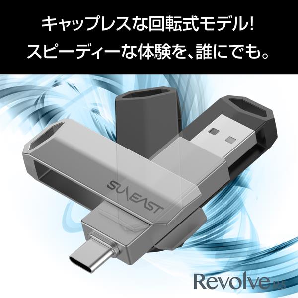 キャップレスな回転式モデルで最大読込転送速度500MB/s。 TypeCとTypeA対応で、様々なデバイスでシームレスにデータ移動。