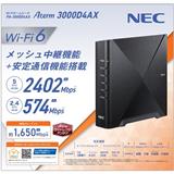 NEC 無線LANルーター Aterm【親機/Wi-Fi6/2402 +574Mbps/メッシュ中継機能搭載/JC-STAR適合】PA-3000D4AX PA3000D4AX