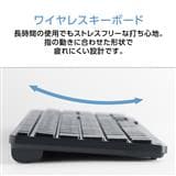 キーボードはワイヤレスでパソコンまわりがすっきり。また長時間の使用でもストレスフリーな打ち心地を実現。指の動きに合わせた形状で押しやすく疲れにくい設計です。