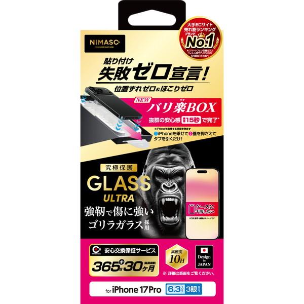 NIMASO iPhone 17 Pro フィルム ケースに干渉しないゴリラガラス バリ楽 NI-G1-17CKG3