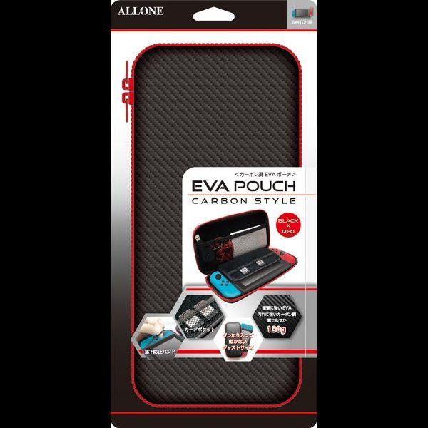 【Switch】 Switch用 カーボン調EVAポーチ ブラック×レッド
