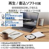 付属ソフト1True BD SE for Logitec(動画再生)、Power2Go 8 for BD(データ保存) ※無償ダウンロード提供。※UHD BD再生ソフトウェアは付属しておりません。