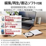 付属ソフト1True BD SE for Logitec(動画再生)、Power2Go for BD(データ保存)、PowerDirector(動画編集) ※無償ダウンロード提供。 ※UHD BD再生ソフトウェアは付属しておりません。
