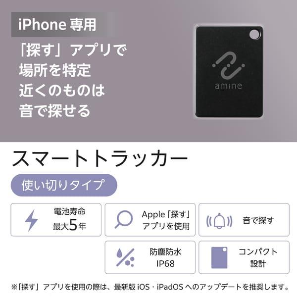 iPhoneの「探す」アプリから位置を確認!鍵や財布、かばんなど大切な荷物に付けて位置情報を追跡できるamine(あみね)シリーズのスマートタグです。