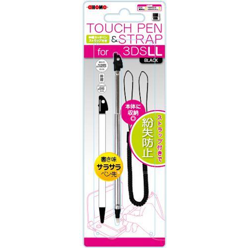 【3DS】 伸縮タッチペン ストラップ付き ブラック (3DSLL用)