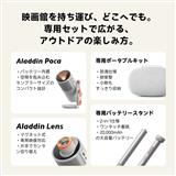 同梱物 Aladdin Pocax1、Aladdin Lens Ax1、電源プラグx1、取扱説明書x1、保証書x1、リモコンx1 ミニリモコン x1 単四電池x2