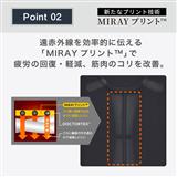従来の繊維に練り込む⽅法やプリント加⼯では輻射される遠⾚外線が繊維や顔料に⼲渉され、⼈体に届く前に減衰してしまう問題も新たなプリント技術で減衰を最⼩限に抑えたのが「MIRAYプリント」です