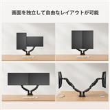 13インチから30インチまで、幅広いサイズのモニターに対応可能なデュアルアームのモニターアームです。最大荷重は2~9kgで、様々なモニターサイズに対応できます。