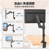 上下(+85°~-30°)、左右スイベル(±90°)、360°回転に対応。前後移動も可能で、姿勢や用途に応じて柔軟に調整できます。