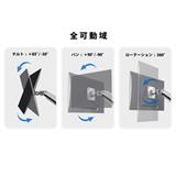 モニターの位置や高さを調節することで、正しい姿勢や目線に合わせて使用でき、肩こりなどを軽減します。また、上下左右だけでなく前後にも移動可能で、画面との距離も調節できます。
