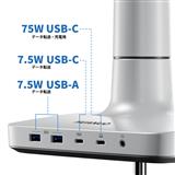ドッキングステーションベースを備えており、効率的な接続を提供します。以下のポートを備えています:1*HDMI 4K@60Hz 1*RJ45 1000M 1*3.5mm Audio 24bit@96KHz 1*USB-C PD in 100W 1*USB-C 75W 1*USB-C 7.5W 2*USB-A 3.0