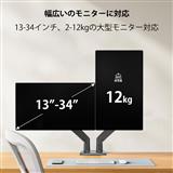 13インチから35インチまで、幅広いサイズのモニターに対応可能なシングルアームのモニターアームです。最大荷重は2~12kgで、特に大型ディスプレイに適しています。