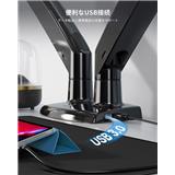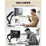 デュアルアーム設計により、2つのモニターを同時に使用することができ、マルチタスク処理に最適です。複数の作業を同時に行うことができ、作業効率を大幅に向上させます。また、大型のデスクやワイドデスクにも対応しており、より広い作業スペースを確保できます。