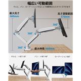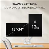 13インチから35インチまで、幅広いサイズのモニターに対応可能なシングルアームのモニターアームです。最大荷重は2~12kgで、特に大型ディスプレイに適しています。