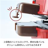 厚みのある食パンも耳までしっかり閉じられる2段階のハンドルロック、上下の深さが違うプレート形状など、キレイに焼ける工夫がいろいろ!