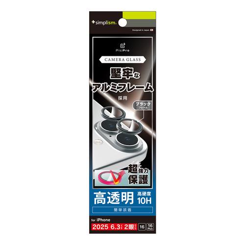 トリニティ iPhone17/iPhone 16/16 Plus 精密設計ケース専用 アルミフレーム 高透明 レンズ保護ガラス ブラック TR-IP25M2-LBLG-PCBK