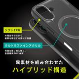特殊硬化コーティングで傷に強い 背面の超硬質素材×側面のやわらか素材 MagSafe対応 衝撃吸収 背面クリア ハイブリッドケース
