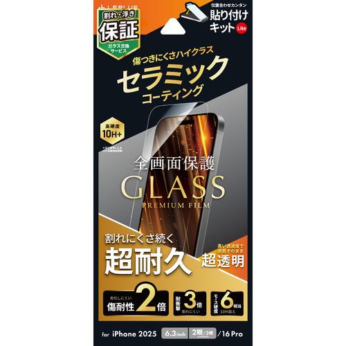 MSソリューションズ iPhone17/iPhone17 Pro/iPhone 16 Pro ガラスフィルム「GLASS PREMIUM FILM Lite」セラミックコーティング 超透明 LN-IM25FGLC