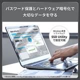 EXCERIA PLUS G2 ポータブルSSDはSSD Utilityマネージメントソフトウェアに対応しており、セキュリティ対策に役立つパスワード保護機能を活用する事ができます。パスワード保護機能はTCG Opal 2.01仕様に準拠し、256ビットAESハードウェア暗号機能によって機密データを保護します。 パスワード保護機能をご使用の場合には、確実にパスワード保護が設定されていることをご確認ください。