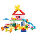 パンを焼くかまどや、料理をするキッチンなど、ごっこ遊びができるパーツがたっぷり入ったブロックセット!