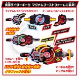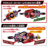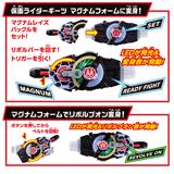 それぞれ異なる操作ギミック搭載のレイズバックルでベルト遊びをカスタマイズ。さらにベルト回転ギミックでリボルブオン変身遊びが楽しめるなど、遊び満載の変身ベルトです。