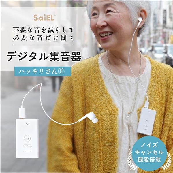 充電式なのに超小型、超軽量。本体で集音した音を専用イヤホンで聞きます