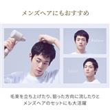 毛束を立ち上げたり、狙った方向に流したりとメンズヘアのセットにも大活躍。タオルドライ後、毛束を無造作にねじりながら温風を当ててクセづけし、冷風でキープ。