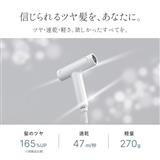 髪のツヤ165%UP、風速47m/秒、約270gの軽さ。