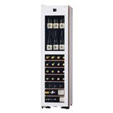 ワインのフルボトルを上室に42本、下室に53本、最大95本収納可能です。開栓して一度で飲み切らなかった日本酒も、立てて収納できる十分なスペースを確保しています。収納力を持たせつつ、横幅約60cm、高さ約173cm、奥行約60cmと省スペース性に配慮した設計です。