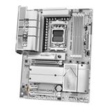 X870Eチップセット搭載、AMD Ryzen 9000/8000/7000シリーズに対応したホワイトカラーのATXマザーボードです。DDR5メモリやPCIe 5.0、USB4、Wi-Fi 7など最新規格に幅広く対応し、高速なデータ転送と拡張性を備えています。