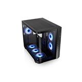 デュアルチャンバー構造と曲面強化ガラスパネルを採用したミドルタワー型PCケースです。Infinity ARGB PWMファン6基を標準搭載し、最大9基のファンや360mmラジエーターに対応。高い冷却性能と快適なメンテナンス性を両立しています。