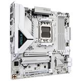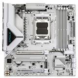 基板やメモリースロットに白を基調としたデザインを採用し、最新のAMD Ryzen 9000シリーズに対応するMicro-ATXマザーボードです。X3D TurboやEZ-Latch機構などのゲーミング向け機能を搭載し、拡張性と操作性にも優れたモデルです。