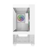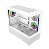 270°強化ガラスパネルを採用したホワイトカラーのミニタワー型PCケースです。コンパクトながらも最大360mmラジエーターや9基のファンに対応し、本格的な冷却性能を発揮します。RTX 50シリーズGPU対応の広い内部スペースを備え、美しいデザインと高い機能性を両立したモデルです。