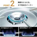 炎の出口「炎口」を従来品よりタテ長の形状にしました。「炎口」がタテ長だと炎が広がりにくくなり、鍋底からこぼれるムダ火が抑制されます。