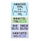 容量 冷蔵室 定格内容積〈食品収納スペースの目安〉 260L〈199L / うち、チルドルーム19L〉