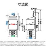 • 防水パンに設置する場合は、本体後方の壁面から防水パン前部の内側まで590mm以上必要です。