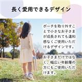 取り外しが可能なポーチにポケット機能を採用。お気に入りのおもちゃ、万が一のときの小さなケガにも安心なばんそうこう、お腹が空いたときのお菓子など、様々なアイテムを入れることができてお出かけに最適。
