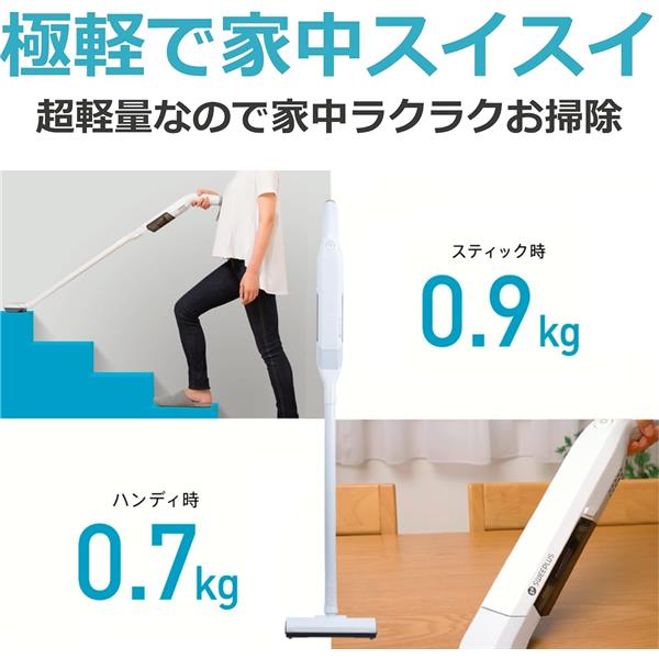 ■とにかく軽くてスリム 本体の重さはわずか900g。 牛乳パックよりも軽い超軽量のスティッククリーナー
