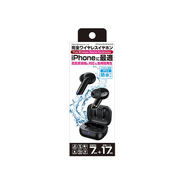 カシムラ 完全ワイヤレス ステレオイヤホン [高音質/防水/長時間再生/ブラック] BL-112