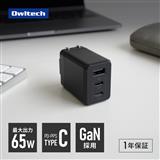 オウルテック USB C×2 A×1 AC充電器 ブラック OWL-APD65C2A1GS-BK
