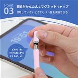 ペン先は導電繊維と透明ディスクの2WAY仕様。マグネットでキャップを吸着でき、充電不要でいつでもお好きなときにお使いいただけます。