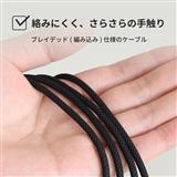 ナイロン素材でありながら絡みにくいブレイデッド(編み込み)ケーブルです。折り曲げ試験1万回の耐久性をもち、普段使いに最適な製品です。
