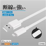 耐屈曲1万回 急速充電2.4A充電/データ転送 USB Type-A to Lightning ブレイデッドケーブル